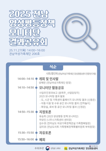 전라남도여성가족재단 ❏ 성평등가족부 지정 전남양성평등센터는 11월 27일(목) 14시, 전남여성가족재단 20...