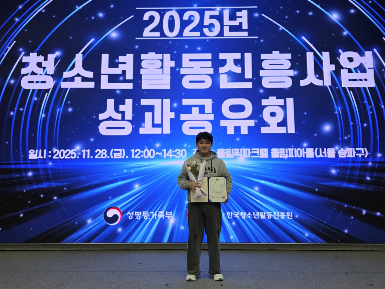 순천시는 지난 28일 서울특별시 올림픽파크텔에서 열린 2025년 청소년활동진흥사업 통합 성과공유회에서 순천시청소년문화의집 방과후아카데미를 수료한 왕윤성 학생이 『2025년 청소년방과후아카데미 활동수기 공모전』 일반부문에서 성평등가족부 장관상(대상)을 수상하는 쾌거를 이뤘다고 밝혔다.
