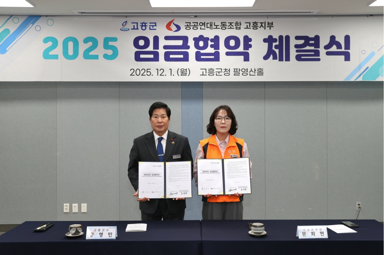 고흥군(군수 공영민)은 지난 1일 공무직 근로자의 처우 개선과 안정적인 노사관계 구축을 위해 공공연대노동조합 고흥지부와 2025년도 임금협약을 체결했다고 밝혔다.