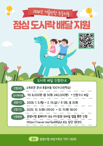 광양시 광양시가 돌봄 공백이 발생하기 쉬운 겨울방학 기간, 초등학생 자녀를 둔 맞벌이·한부모 가정으로 직접 ...