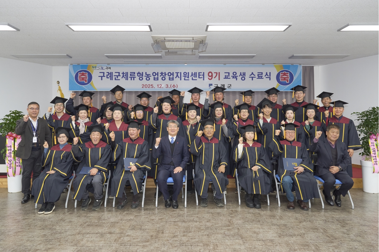 전남 구례군은 지난 3일 체류형농업창업지원센터 대강당에서 도시민의 안정적인 농촌 정착을 지원하기 위해 운영한 체류형농업창업지원센터 9기 교육생 수료식을 개최했다고 밝혔다.