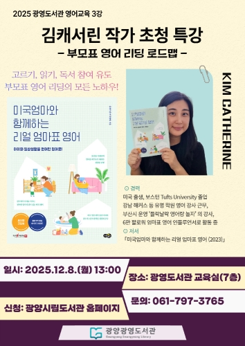 광양시 광양광영도서관이 올해 영어교육 부모특강의 마지막 순서로 오는 12월 8일(월) 오후 1시, 영어교육 ...