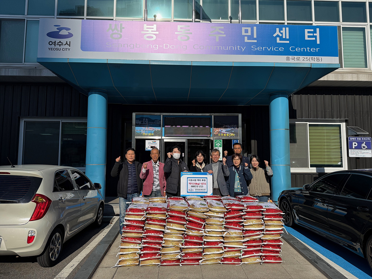 여수시 쌍봉동장은 “어려운 시기에 주변을 돌아보는 따뜻한 후원에 깊이 감사드리며, 전달받은 백미는 꼭 필요한 분들께 정성껏 나누겠다”고 밝혔다.
