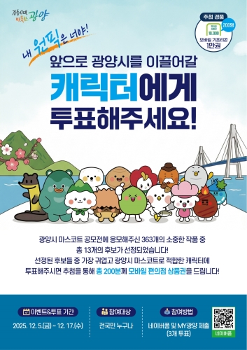 광양시 광양시는 앞으로 시의 정체성과 이미지를 대표할 새로운 캐릭터 선정을 위해 12월 5일부터 17일까지 ...