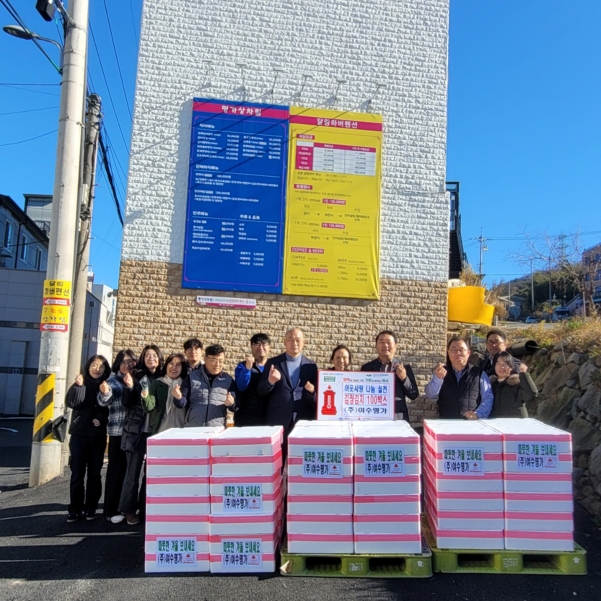 여수시는 ㈜여수명가(대표 신선자)가 지난 5일 겨울맞이 나눔 실천으로 5백만 원 상당의 김장 김치 100박스를 기탁했다고 밝혔다.
