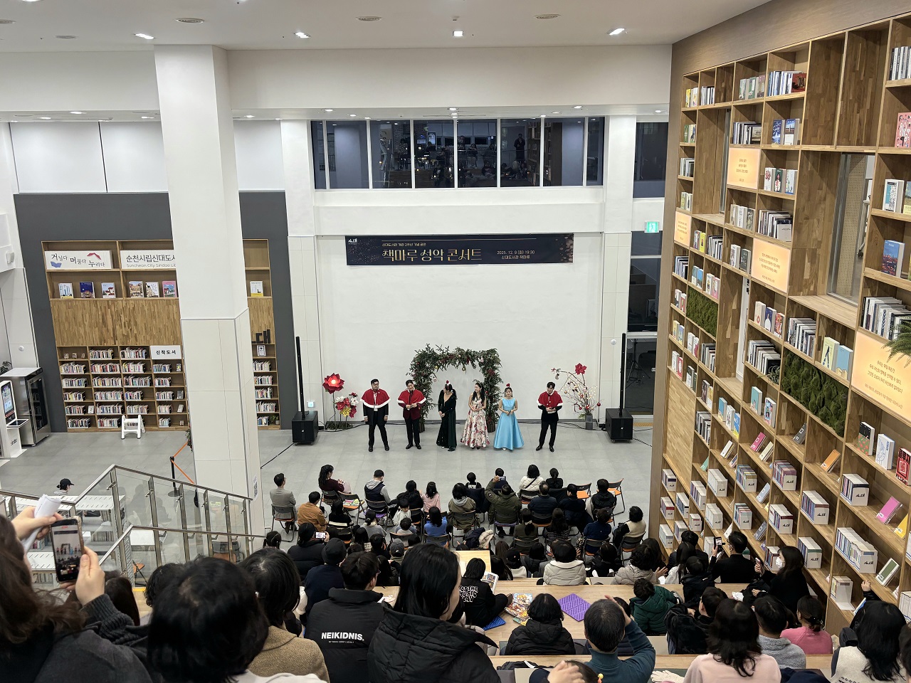 이번 공연은 지난 2년간 도서관과 함께해 온 시민들과 성장을 기념하는 자리로 마련됐다. 북콘서트·강연·공연·전시 등 다양한 문화행사가 이어져 온 ‘책마루’에서 열려 더욱 의미를 더했다. 특히 시민 반응이 가장 좋았던 성악 공연을 다시 선보여 연말 분위기를 따뜻하게 채웠다.