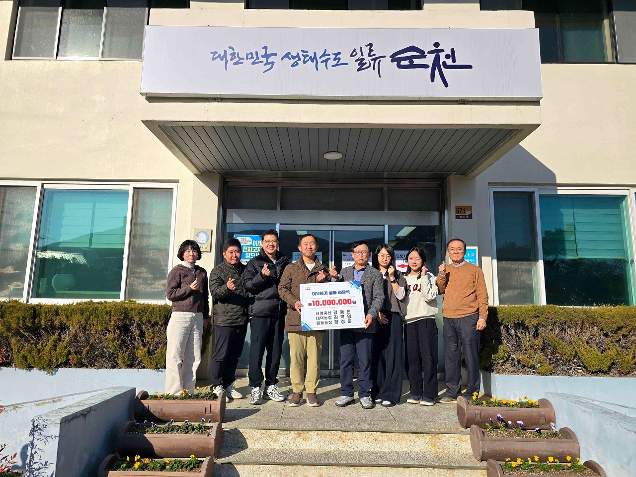 순천시 월등면행정복지센터는 지난 9일 월등면에서 축산업을 경영하고 있는 월등농장 장경준, 신영축산 강동진, 대덕농장 김덕영 씨가 월등면 주민복지를 위해 1천만 원을 기부했다고 밝혔다.