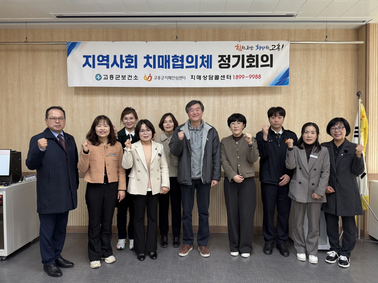 지역사회 치매협의체는 치매안심센터장을 포함한 총 10명으로 구성되며, 이날 회의에는 고흥군청, 공립노인전문요양병원, 고흥경찰서, 고흥소방서, 국민건강보험공단, 노인복지관, 녹동현대병원 등 다양한 기관 관계자들이 참석했다.