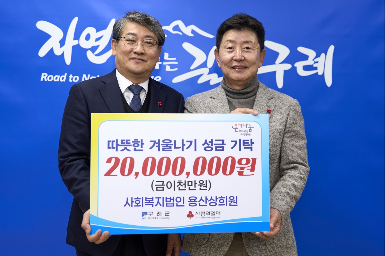 김순호 구례군수는 “용산상희원의 나눔은 지역사회에 큰 의미가 있다. 기탁해주신 성금은 꼭 필요한 분들에게 공정하고 신속하게 전달될 수 있도록 하겠다”고 감사를 전했다.