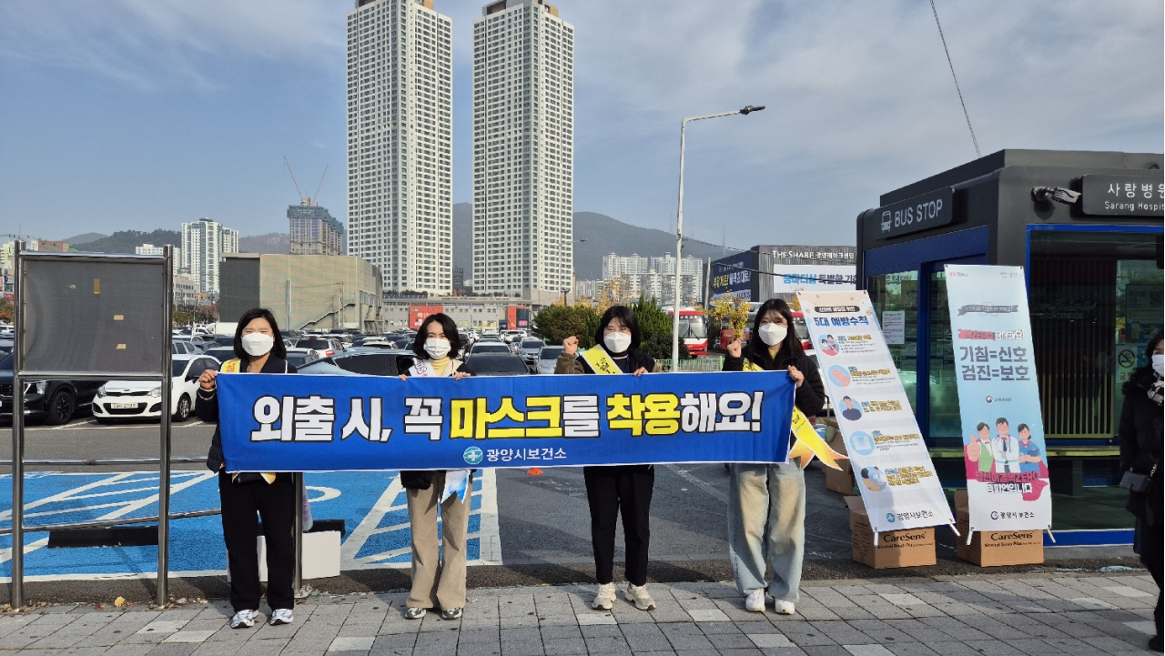 광양시는 최근 인플루엔자(독감) 환자가 급증하고 겨울철 호흡기감염병이 동시 유행함에 따라 지역사회 감염 확산을 예방하기 위해 지난 12월 1일 LF스퀘어와 중마동 버스터미널 일원에서 마스크 착용 캠페인을 전개했다고 밝혔다.