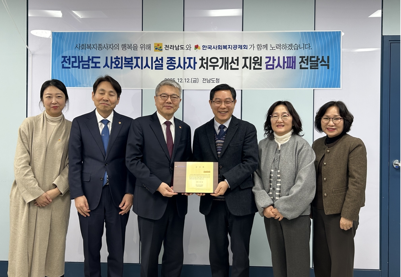 전라남도는 사회복지시설 종사자 처우개선에 기여한 공로를 인정받아 한국사회복지공제회로부터 감사패를 받았다고 밝혔다.