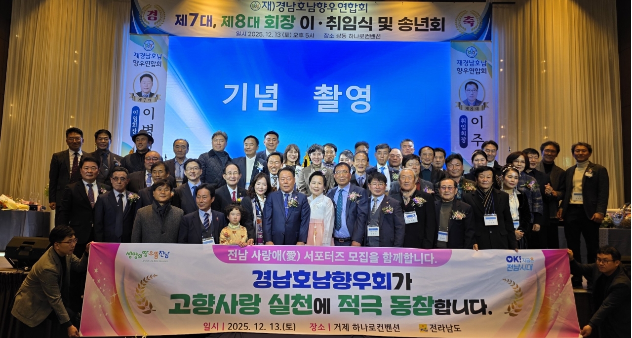 전라남도는 13일 경남 거제 하나로컨벤션에서 열린 경남호남향우연합회 제8대 회장 취임식에 참석해 고향사랑 실천 캠페인을 펼치며 향우회와의 교류와 협력을 강화했다.