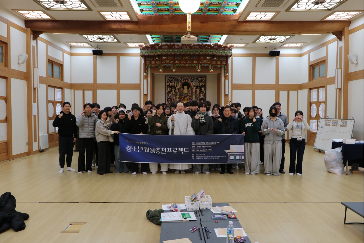 전남 구례군은 지난 12월 13일(토) 화엄사 화엄원에서 관내 중·고등학생 등 80여명이 참여한 청소년 마음충전프로젝트「화엄사 K-명상 힐링의 날」을 개최했다고 밝혔다.