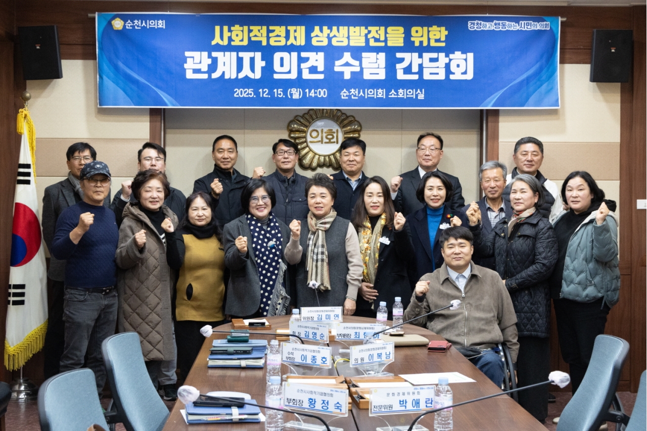 순천시의회(의장 강형구)는 지난 15일 시의회 소회의실에서 사회적경제 활성화를 위한 관계자 간담회를 열고, 사회적경제 관련 단체 및 관계자들과 현장의 어려움을 공유하며 정책 지원 방안을 논의했다.
