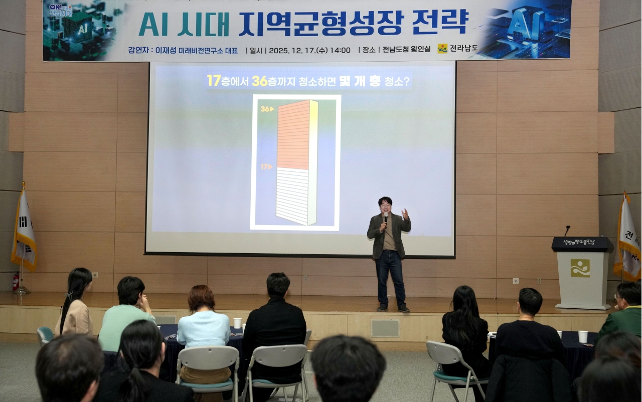 전라남도는 17일 도청 왕인실에서 이재성 미래비전연구소 대표를 초청해 ‘AI 시대 지역균형성장 전략’을 주제로 강연을 개최했다.