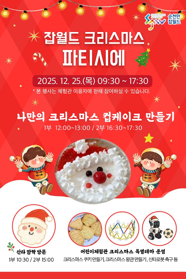 순천시는 오는 25일 크리스마스를 맞아 순천만잡월드에서 「잡월드 크리스마스 파티시에」 이벤트를 개최한다.