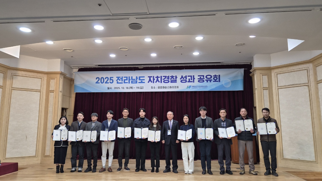 순천시가 2025년 자치경찰사무 협력체계 구축 우수 시군 평가에서 ‘최우수기관’으로 선정돼, 18일 전라남도지사 기관표창을 수상했다.