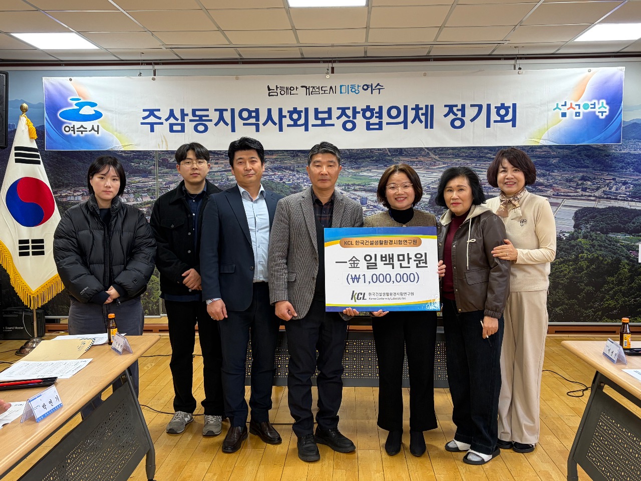 전남 여수시 삼동지구에 위치한 한국한국건설생활환경시험연구원(KCL)은 지난 17일 여수시 주삼동에 취약계층을 위한 사랑의 후원금 100만 원을 전달했다.
