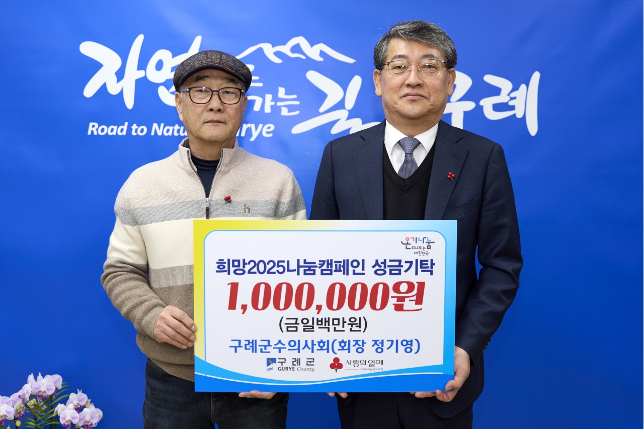 구례군수의사회는 지역 수의사들로 구성된 단체로, 평소에도 동물 복지와 지역사회 발전을 위한 다양한 활동에 관심이 있다. 이번 기탁으로 지역사회와 함께하는 나눔 실천을 통해 따뜻한 연말 분위기 조성에 앞장섰다.