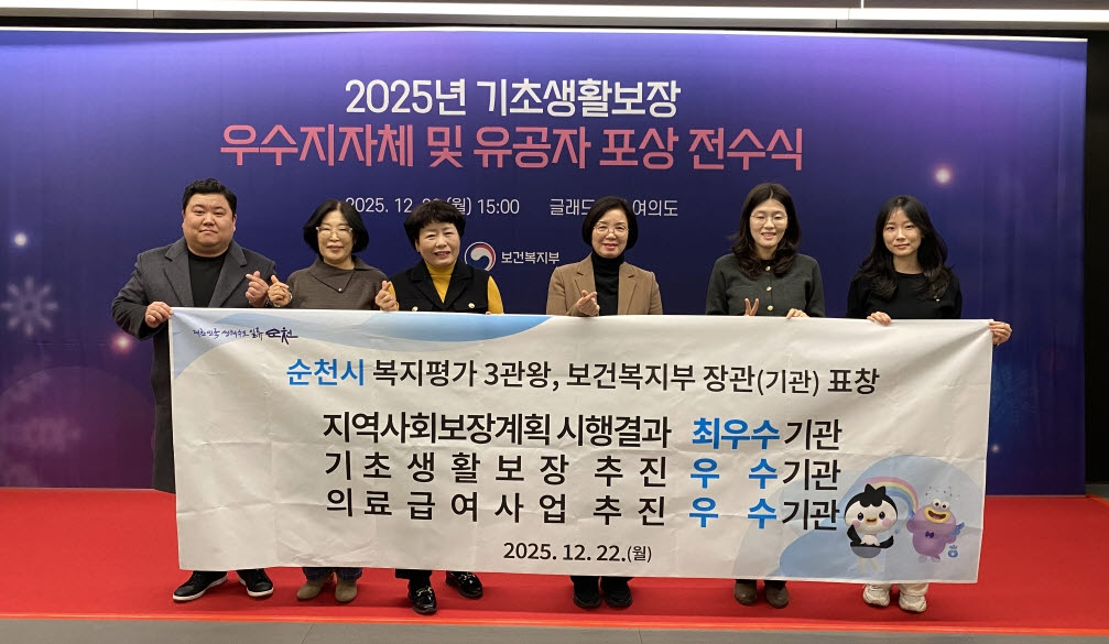 또한 지난 22일에는 기초생활보장 및 긴급복지 지원제도 운영 실적을 평가하는 기초생활보장분야에서 4년 연속 우수지자체 기관 표창을 수상했다. 제도 개편 사항을 신속히 현장에 적용하고 신규 대상자를 적극 발굴하는 등 촘촘한 사회안전망 구축에 기여한 공로가 인정된 결과다. 아울러 수급 탈락자 등 위기가구에 대해 순천형 긴급지원 ․ 생활안정비 사업을 연계함으로써 더욱 두터운 복지 그물망을 형성했다는 평가를 받았다.