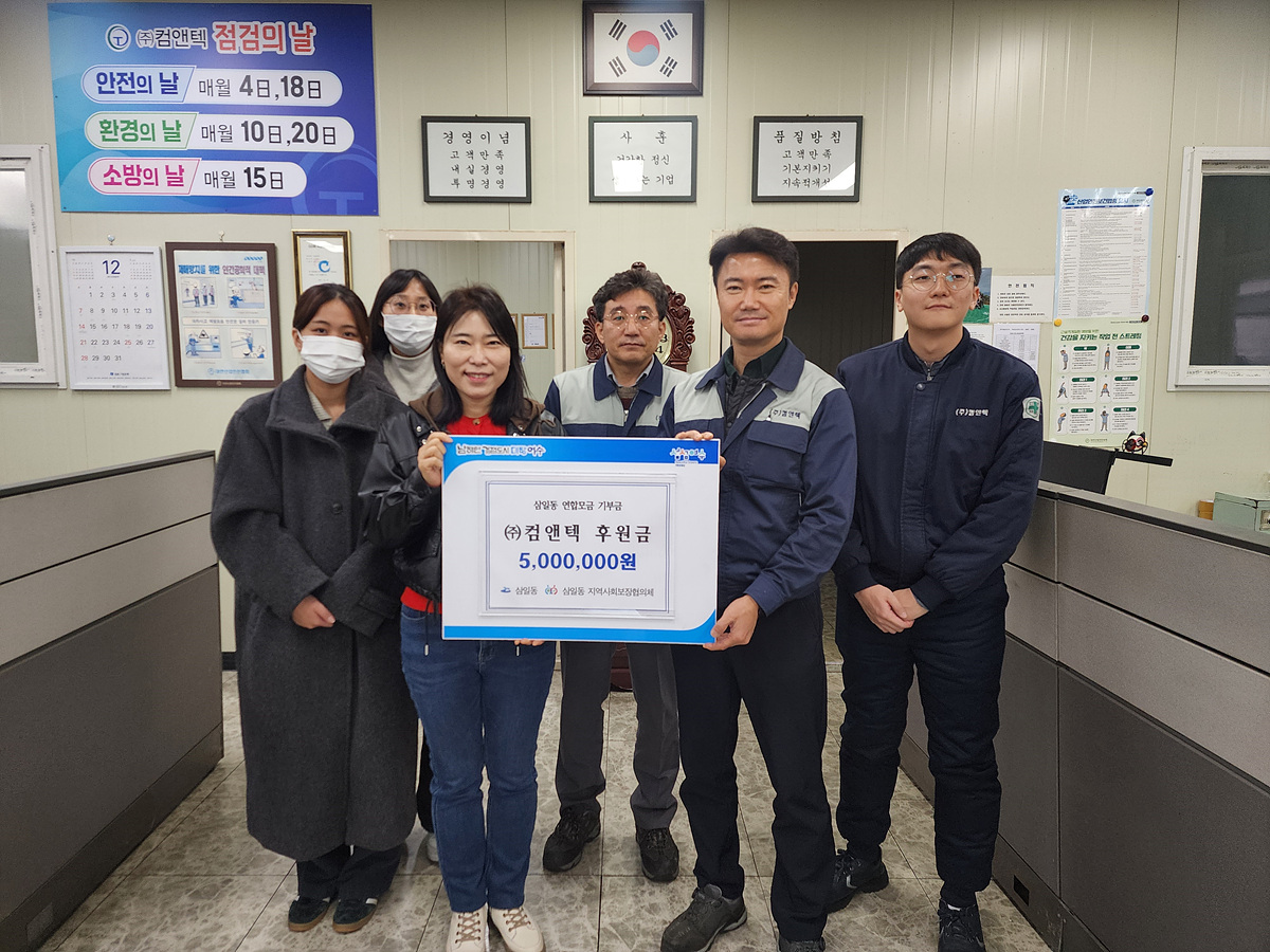 ㈜컴앤텍은 지난 22일 삼일동 지역사회보장협의체에 지역 취약계층 복지 향상을 위한 후원금 500만 원을 기탁했다.