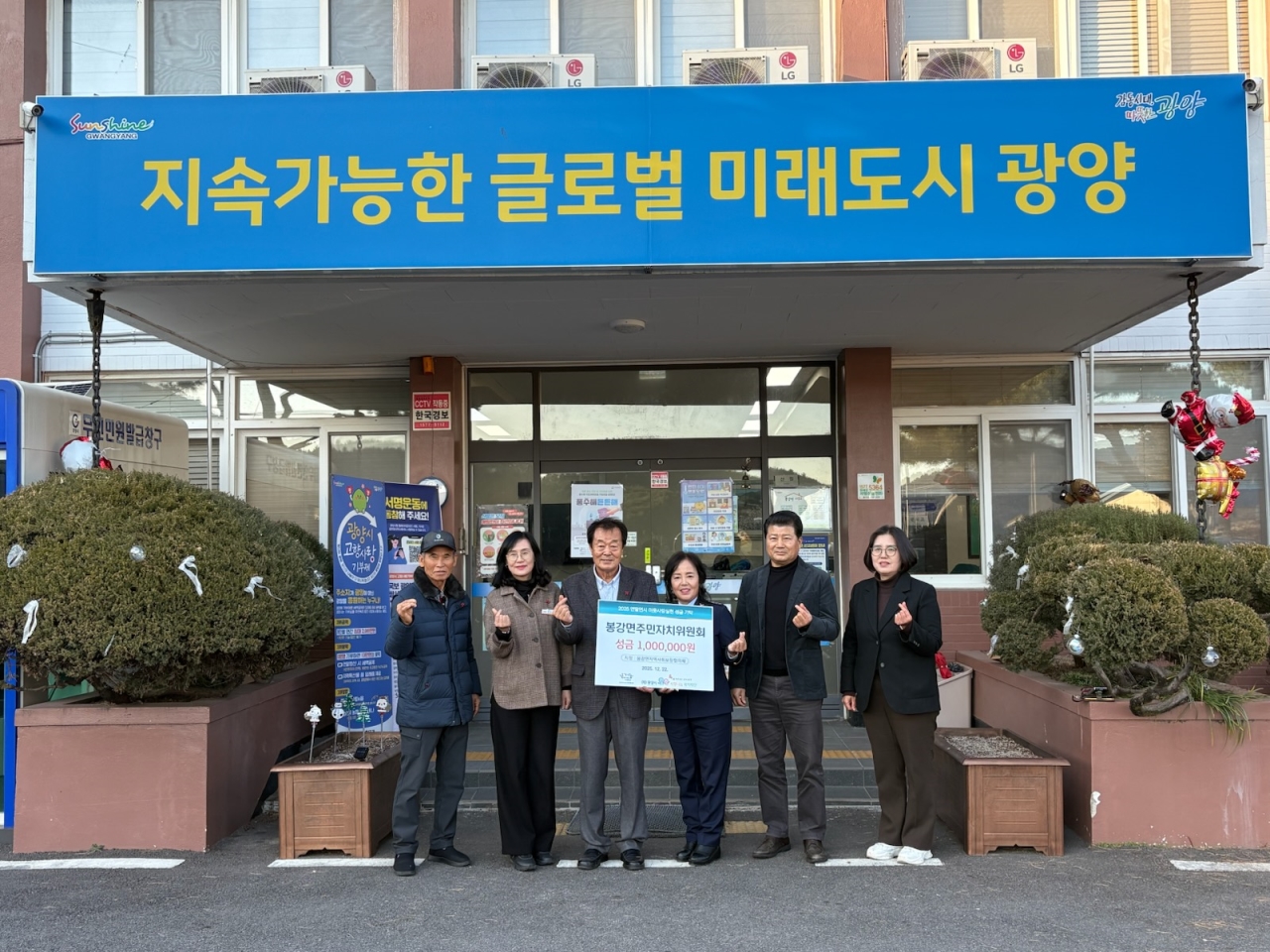 봉강면 주민자치위원회(위원장 박계수)가 (재)광양시사랑나눔복지재단을 통해 봉강면지역사회보장협의체에 성금 100만 원을 기탁했다.