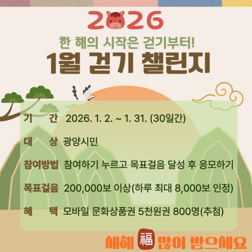광양시 광양시는 지역 주민의 건강생활실천을 지원하기 위해 모바일 걷기 앱 「워크온」에서 ‘한 해의 시작은 걷...