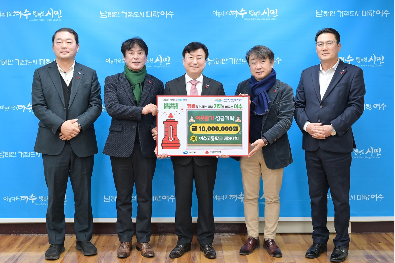 여수시는 여수고등학교 34회 동창회(회장 김종학)가 지난 30일 모교와 지역사회에 대한 애정을 담아 「희망2026나눔캠페인」에 성금 1,000만 원을 기탁했다고 밝혔다.