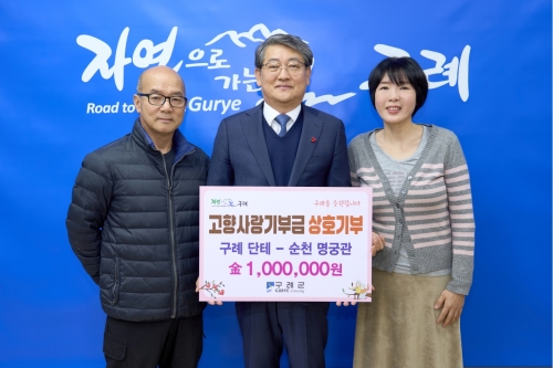 김순호 구례군수는 “해마다 변함없이 이웃사랑을 실천해 주시는 라플라타 김미라 대표님께 깊이 감사드린다”며 “이러한 따뜻한 나눔이 지역사회 전반에 희망을 전하는 큰 힘이 되고 있다”고 말했다.