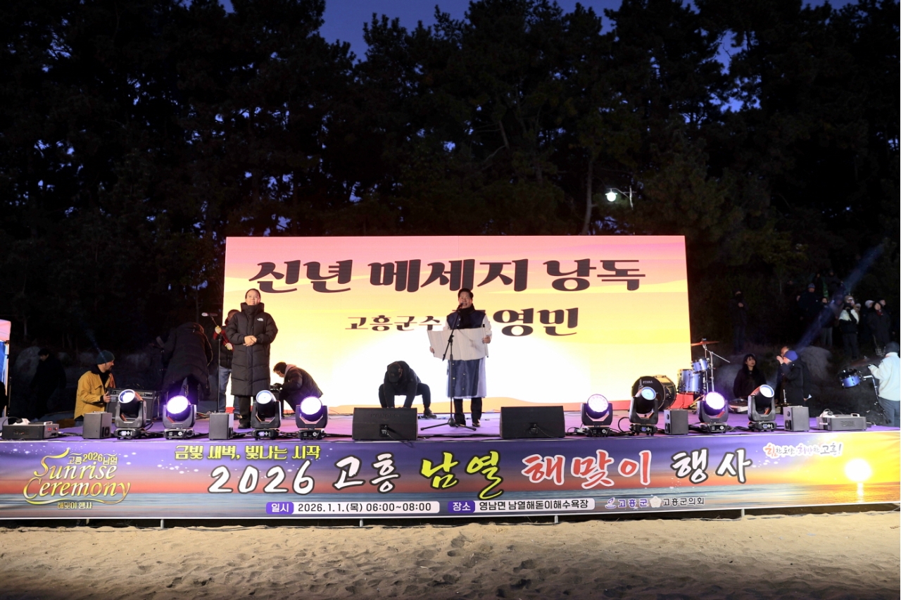 고흥군(군수 공영민)은 지난 1일 새벽 남열해돋이해수욕장에서 열린‘2026 고흥 남열 해맞이 행사’가 군민과 관광객 등 8천여 명이 함께한 가운데 성황리에 마무리됐다고 밝혔다.