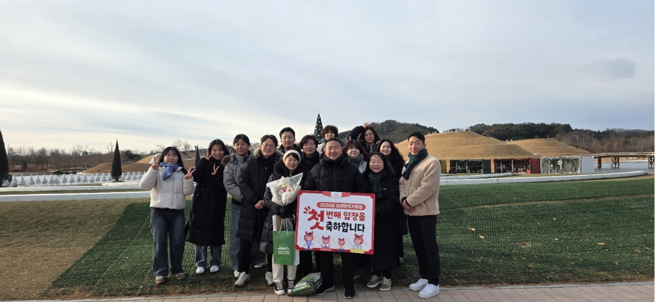 2026년 새해 첫날, 순천만국가정원이 특별한 발걸음과 함께 힘찬 출발을 알렸다. 첫 관람객은 청주에서 방문한 50대 사업가 부부로, 지난해 순천만국가정원을 찾았을 당시 느꼈던 깊은 인상과 여운을 간직한 채 “새해의 시작은 꼭 이곳에서 하자”는 약속을 지키기 위해 새벽 5시부터 길을 나섰다.