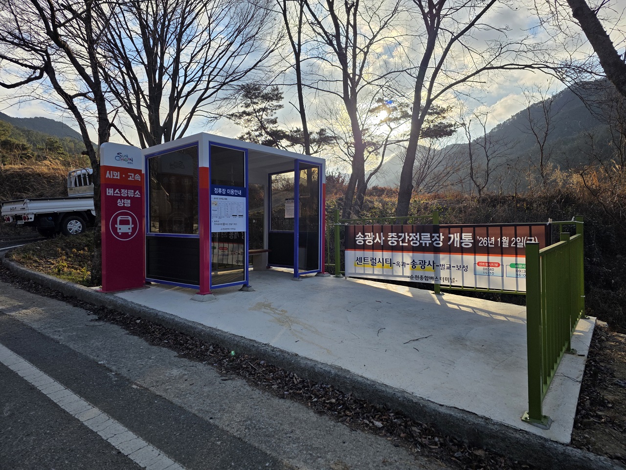 그동안 보성~서울 시외버스 노선은 운행 경로상 송광사를 지나면서도 정류장이 없어 무정차 통과해 왔다. 이로 인해 송광사를 찾는 서울·수도권 인근 관광객과 템플스테이 이용객들은 순천종합버스터미널에서 하차한 뒤 추가로 시내·농어촌버스 등을 이용해야 하는 불편을 겪어왔다.