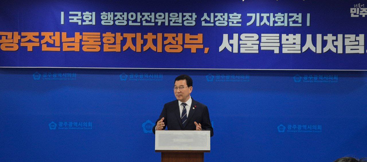 ❍ 신정훈 국회 행정안전위원장은 오늘 광주광역시의회에서 기자회견을 열고 “광주·전남 대통합을 통해 분권형 국가로의 대전환을 이루고, 대한민국 재도약의 길을 열겠다”고 밝혔다.