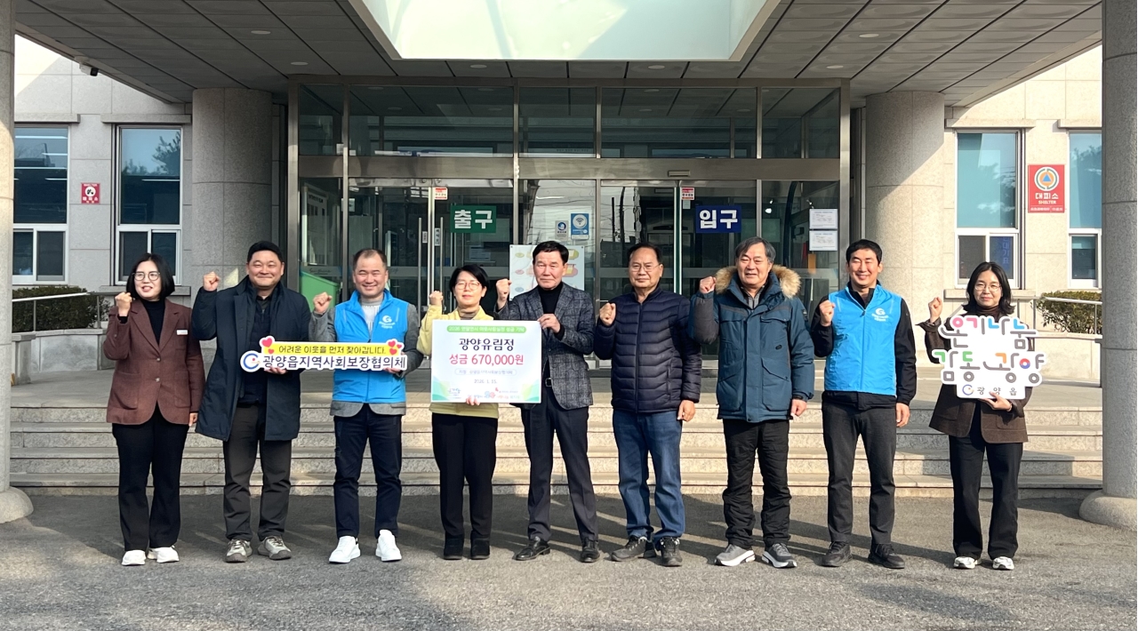 이번 후원금은 광양유림정 회원 67명이 십시일반 정성을 모아 마련한 것으로, 광양읍지역사회보장협의체를 통해 지역 내 취약계층을 위한 복지사업비로 사용될 예정이다.