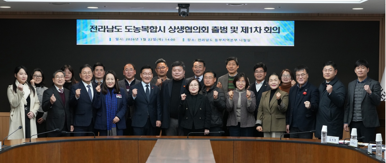 전라남도는 도농복합시 상생협의회 위촉식과 제1차 정기회의를 지난 22일 동부청사에서 열고, 도농 간 균형발전과 상생협력을 위한 공식 논의를 시작했다.