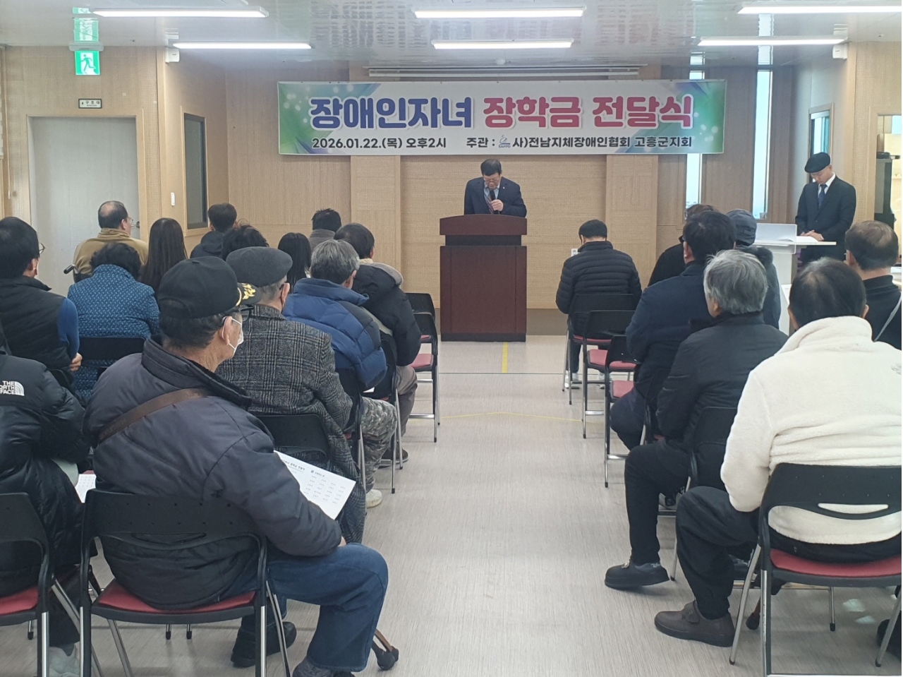 전남지체장애인협회 고흥군지회(지회장 유종옥)는 지난 22일 고흥군장애인복지관 강당에서 장애인 가정 학생들을 위한 장학금 전달식을 개최했다.
