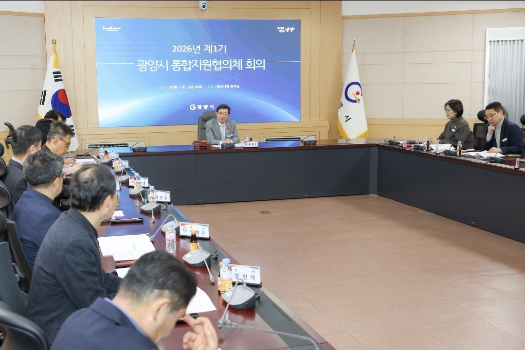 광양시는 1월 21일 광양시청 창의실에서 「제1기 광양시 통합지원협의체 정기회의」를 개최하고, 제1기 광양시 통합지원협의체 신규 위원 위촉장 전수와 함께 2026년 통합돌봄사업 실행계획에 대한 심의를 진행했다.