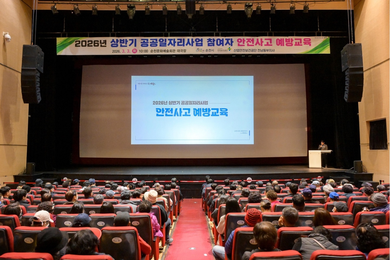 시는 사업 참여자의 안전사고 예방을 위해 지난 3일 순천문화예술회관 대극장에서 근로자와 담당 공무원 등 300여 명을 대상으로 안전사고 예방교육을 실시했다. 교육에는 한국산업안전보건공단 전남동부지사 강사가 참여해 작업 중 발생할 수 있는 주요 사고 사례와 예방 대책을 중심으로 현장 안전수칙 준수와 실질적인 안전관리의 중요성을 강조했다.