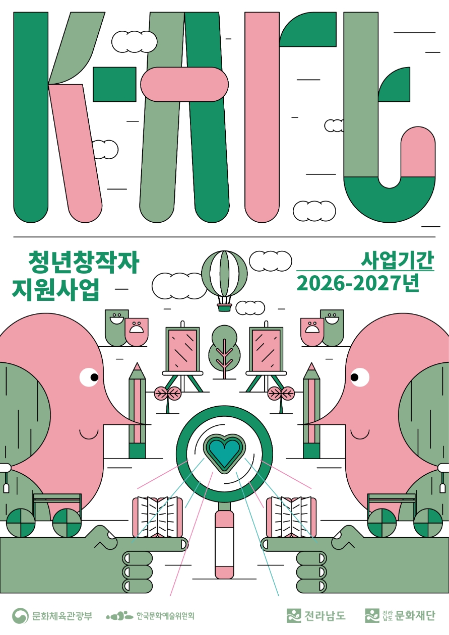 K-Art 청년창작자 지원사업 등 공모 신청은 전남도문화재단 누리집(www.jncf.or.kr)에서 확인할 수 있다.