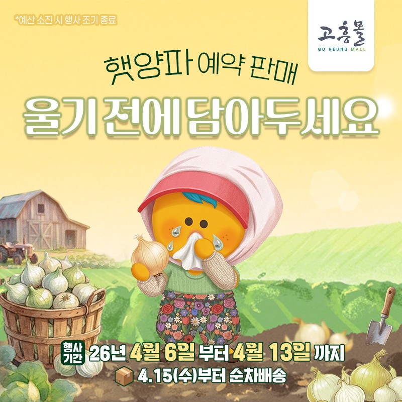 고흥몰 관계자는 “거금도 햇양파는 매년 소비자 만족도가 높은 대표 농산물”이라며 “이번 예약 판매를 통해 소비자는 신선한 농산물을 합리적으로 구매하고, 농가는 안정적인 소득을 확보하는 상생 구조를 지속 확대해 나가겠다”고 말했다.