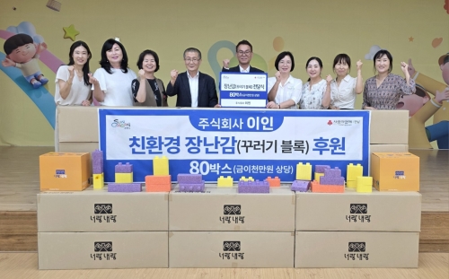 ㈜이인, 순천시에 친환경 장난감(꾸러기블록) 80박스 기부 순천시 ㈜이인(대표 이필곤)이 지난 11일 친환경 장난감(꾸러기블록) 80박스를 순천시에 기부하며 따뜻한 나눔을 실천했다. 2,000만원 상당인 ‘꾸러기블록’은 친환경 소재로 제작..... 2025-09-15