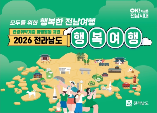 전남도, 관광 취약계층 행복여행활동 지원 전라남도 모두를 위한 행복한 전남여행 전라남도가 지역 관광 취약계층의 여행 기회 확대를 위해 ‘행복여행활동 지원사업’을 운영한다고 밝혔다. 올해로 시행 3년째인 ‘행복여행활동 지원..... 2026-01-24