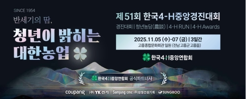 고흥군, ‘제51회 한국4-H중앙경진대회’ 개최 고흥군 고흥군(군수 공영민)은 오는 11월 5일부터 7일까지 3일간, 고흥문화회관 일원에서 ‘제51회 한국4-H중앙경진대회’를 개최한다고 밝혔다. 이번 대회는 한국4-H중앙연합회(..... 2025-11-03