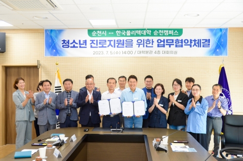 순천시 순천시(시장 노관규)와 한국폴리텍대학 순천캠퍼스(이하 폴리텍대학)가 5일 한국폴리텍대학 본관 4층 대...