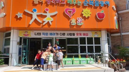 순천시 지난 6일 순천북유치원 원아들이 지역사랑을 실천하기 위해 원내 ‘나눌수록 행복한 알뜰시장’을 열어 판...
