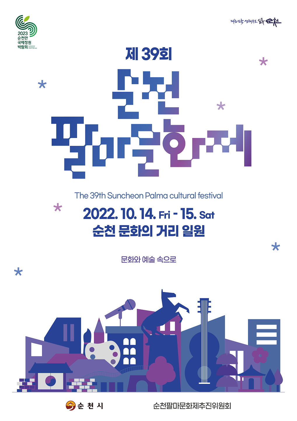 이번 행사는 ‘문화와 예술 속으로’라는 주제로 순천시만의 특색을 가진 s(순천)-컬처를 조명하고 앞으로 나아갈 문화예술의 방향을 시민들에게 전할 계획이다.