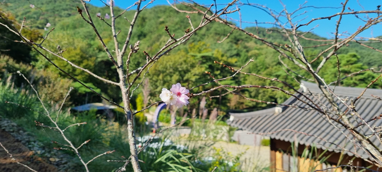 지금 구례수목원에는 가을바람을 머금고 수줍게 가을벚나무가 개화하기 시작하였다. 가을벚나무는 봄과 가을에 꽃을 볼 수 있기 때문에 춘추벚나무라고 불리기도 한다.