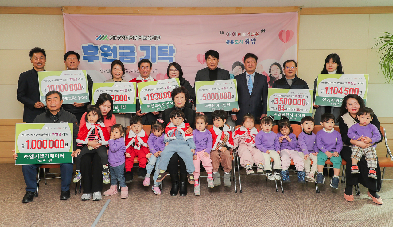 정인화 광양시장은 “미래의 이끌어 갈 아이들을 위해 기부해 주셔서 진심으로 감사드린다”며 “아이 양육하기 좋은 행복도시 광양을 만들기 위해 최선을 다하겠다”고 말했다.