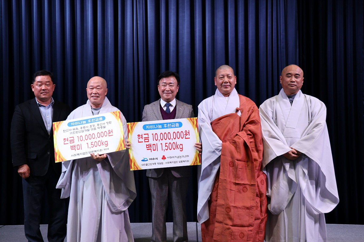 행사에서 임직원들은 정성껏 모은 성금 1,000만 원과 백미 1,500kg을 여수시에 전달했으며, 성금과 성품은 전남사회복지공동모금회에 지정기탁 돼 지역 내 어려운 이웃에게 전달 될 예정이다.