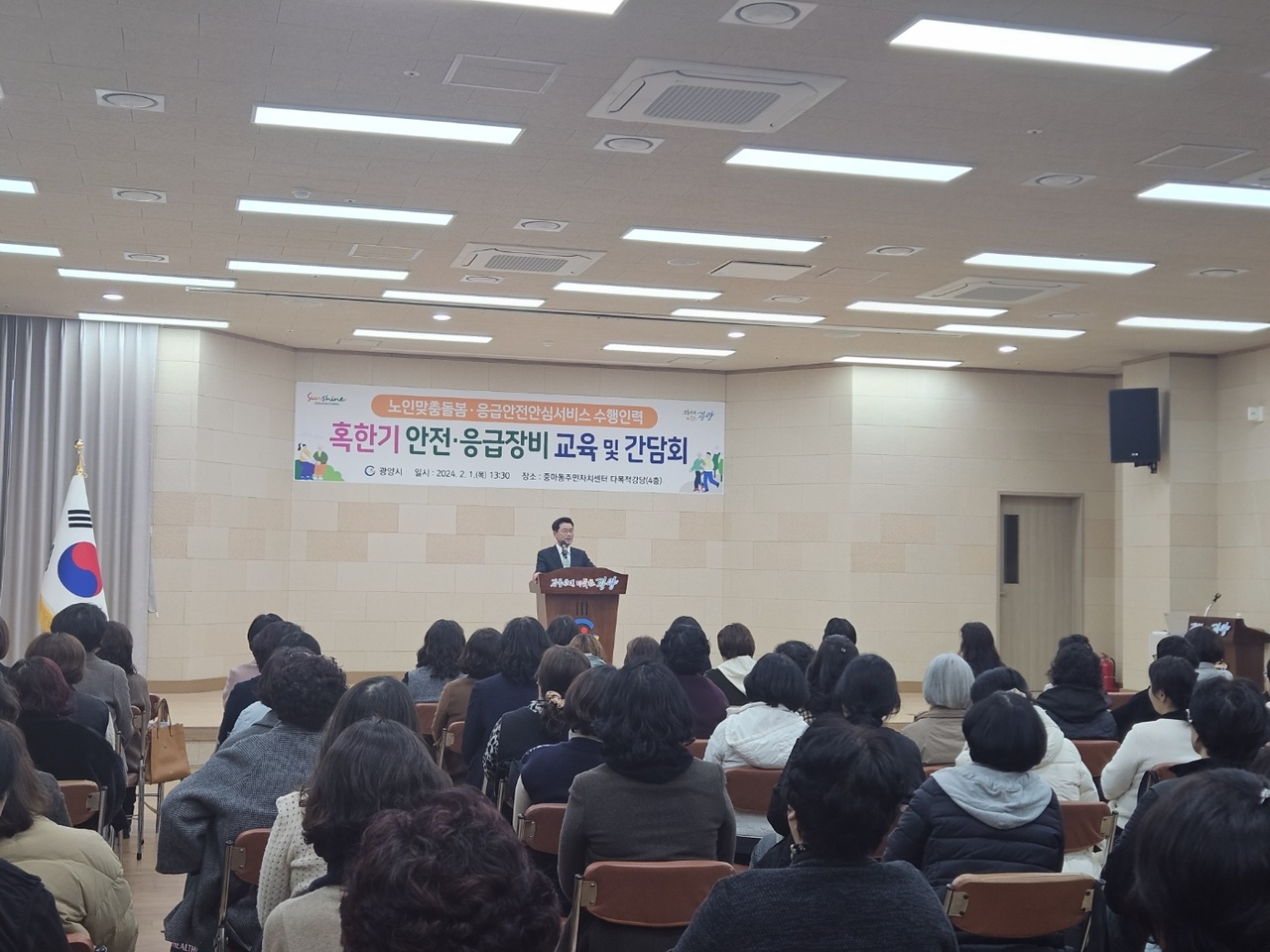 광양시는 지난 1일 중마동 주민자치센터에서 2024년 노인맞춤돌봄서비스 수행인력을 대상으로 혹한기 대비 대응 행동 요령과 차세대 응급장비 이용 방법 등에 관한 교육을 진행했다.